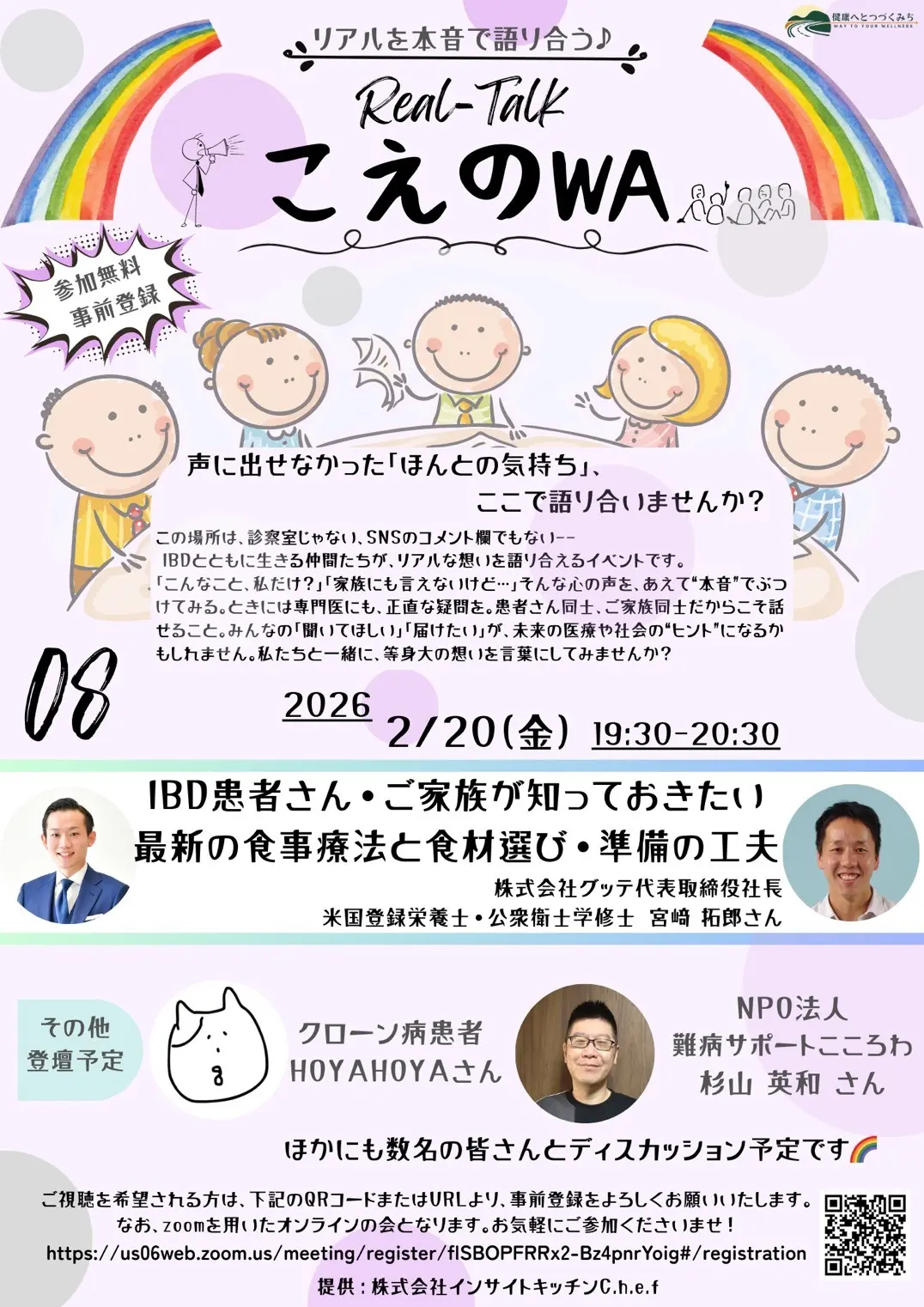 「診察室ではうまく言えない…」「SNSのコメント欄にも書きづらい…」 そんな声に出せなかった「ほんとの気持ち」を、IBDとともに生きる仲間たちと本音で語り合いませんか?