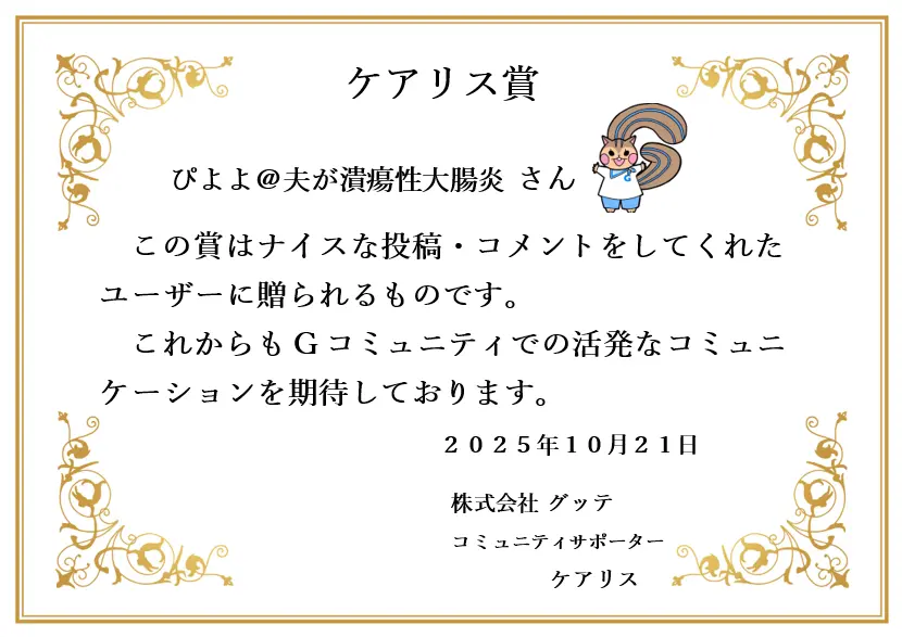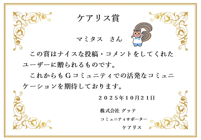 それでは、次回のケアリス賞を狙って(?)みなさんも活発なコミュニケーションを期待していますね~~☆